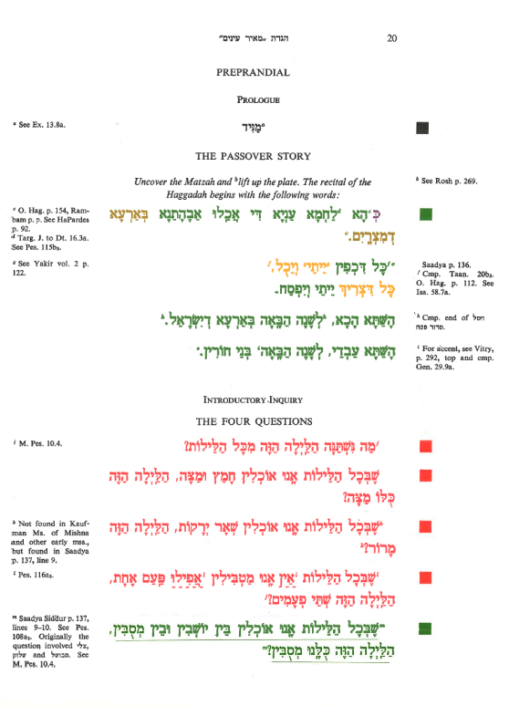 עֲבָדִים הָיִינוּ לְפַרְעֹה בְּמִצְרָיִם, וַיּוֹצִיאֵנוּ ה' אֱלֹקֵינוּ מִשָּׁם בְּיָד חֲזָקָה וּבִזְרֹעַ נְטוּיָה. וְאִלּוּ לֹא הוֹצִיא הַקָּדוֹשׁ בָּרוּךְ הוּא אֶת אֲבוֹתֵינוּ מִמִּצְרָיִם, הֲרֵי אָנוּ וּבָנֵינוּ וּבְנֵי בָנֵינוּ מְשֻׁעְבָּדִים הָיִינוּ לְפַרְעֹה בְּמִצְרָיִם. וַאֲפִילוּ כֻּלָּנוּ חֲכָמִים כֻּלָּנוּ נְבוֹנִים כֻּלָּנוּ זְקֵנִים כֻּלָּנוּ יוֹדְעִים אֶת הַתּוֹרָה מִצְוָה עָלֵינוּ לְסַפֵּר בִּיצִיאַת מִצְרָיִם. וְכָל הַמַּרְבֶּה לְסַפֵּר בִּיצִיאַת מִצְרַיִם הֲרֵי זֶה מְשֻׁבָּח.